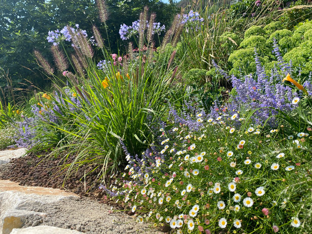 Immagina un giardino dove la natura è la protagonista, un luogo dove fiori e piante si mescolano in un'esplosione di colori e profumi. Questo giardino si trova in Val Seriana, tra le montagne bergamasche è un posto speciale, dove ogni cosa è al suo posto e dove l'armonia regna sovrana. I fiori sbocciano uno dopo l'altro, dalla primavera all'autunno, regalandoci uno spettacolo sempre nuovo. Il blu e il grigio sono i colori dominanti, ma qua e là spuntano macchie di giallo, come un raggio di sole che illumina il paesaggio. Le piante sempreverdi, invece, ci ricordano che la natura è sempre viva, anche quando il freddo dell'inverno avvolge ogni cosa. E quando arriva la neve e il gelo, il giardino si trasforma in un luogo magico, come sospeso nel tempo, dove il vento sussurra tra i rami e la brina disegna arabeschi sulle spighe dorate delle leggere graminacee. Questo giardino è un esempio di come l'uomo può vivere in armonia con la natura, rispettando i suoi ritmi e valorizzandone la bellezza